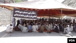 احتجاج کوونکي وايي له نزدې ۱۳ کالو راهیسې د کډوالۍ ژوند کوي او خپل کورونه يې په راجګل تېراه کې وران ويجاړ پراته دي.