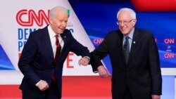 تیره شپه د مارچ په 15 د امریکا په CNN او یوني وژن (Univision​)د ډیموکریټ گوند دوه کاندیدان پخواني نایب صدر جو بایډن او سینیټر برني سینډر تر منځه مباحثه وه، دواړه مشران چې سټېج ته وبلل شو نو د لاسونو په ځای یې څنگلې سره ورکړې.